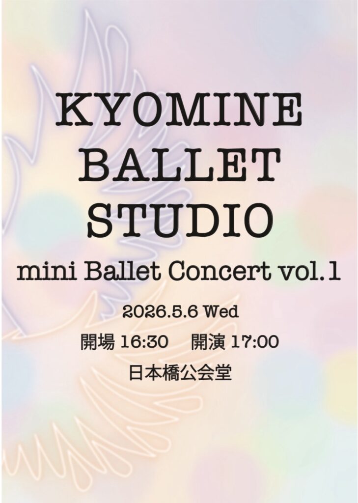 ブログ mini Ballet Concert vol.1 2026年5月6日(水祝)日本橋公会堂にてmini Ballet Concert vol.1を開します!ゲストは浅田良和さんです! 入場無料・全席自由となりますが、入場にはプログラムが必要となります。ご希望の方はプログラムをお渡しいたしますので、ぜひお声がけください。